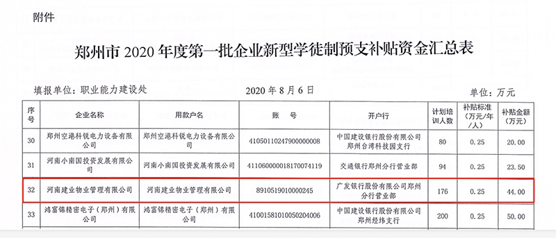 建業(yè)物業(yè)入選鄭州市人社局首批 “企業(yè)新型學(xué)徒制”單位