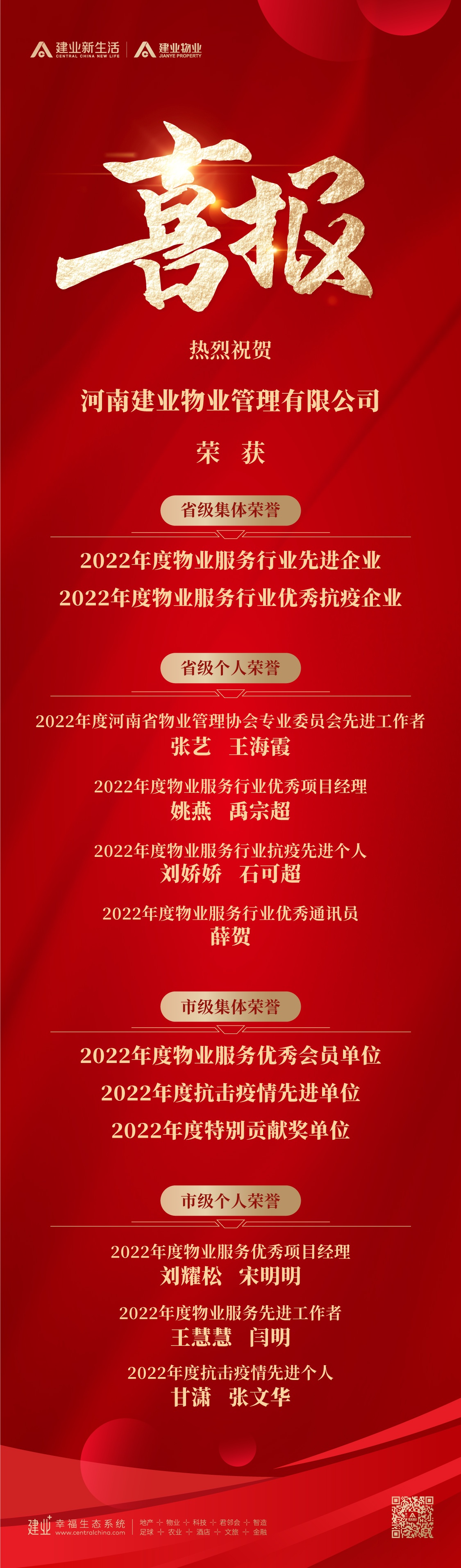 深耕致遠,建業(yè)物業(yè)再獲多項榮譽!